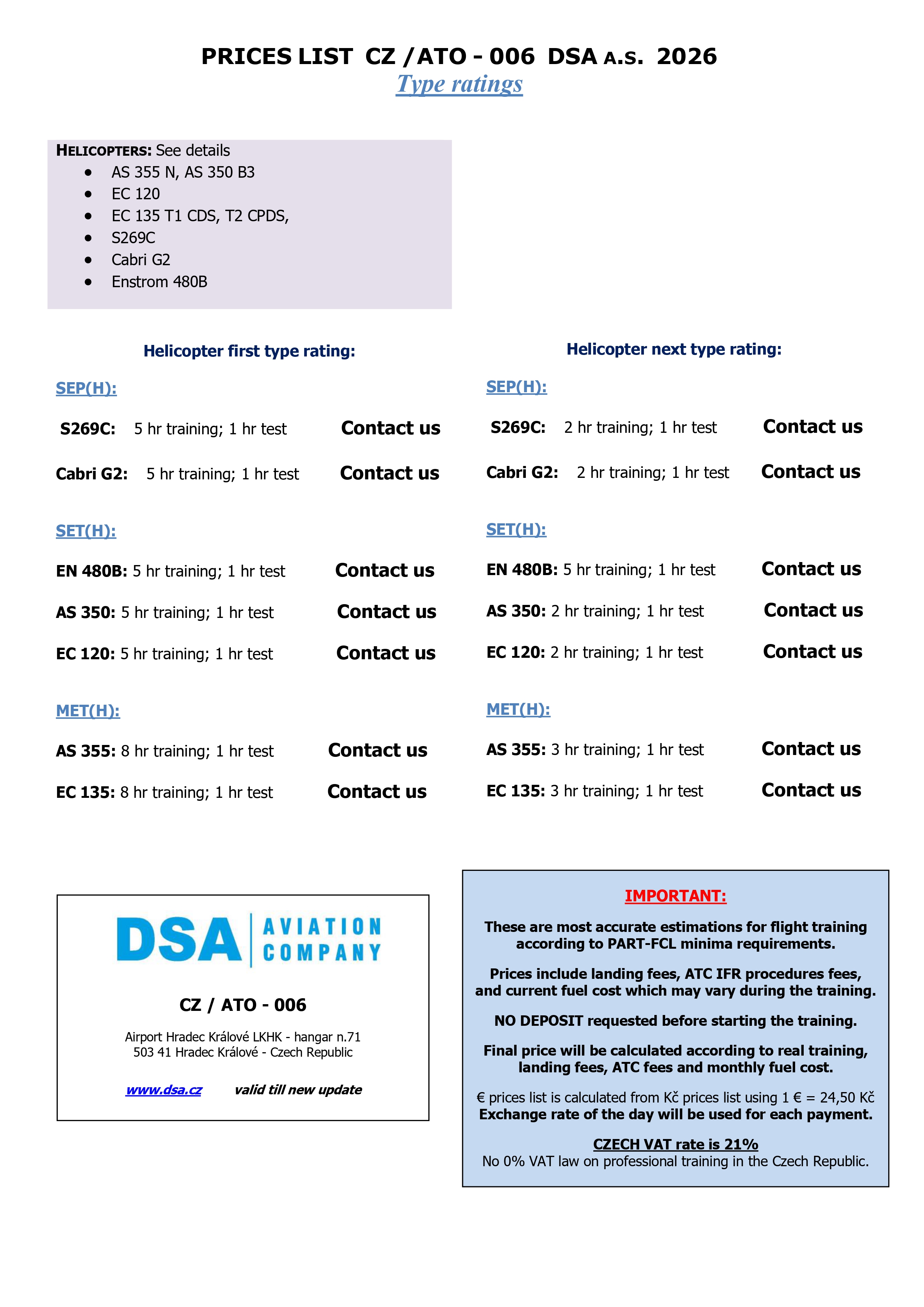 DSA a.s. détient un Certificat ATO établi par la CAA tchèque (UCL), pays membre de l'EASA